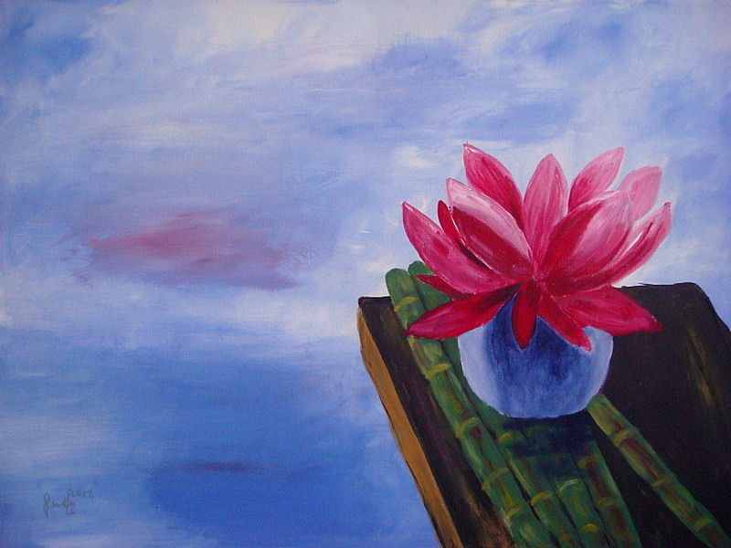 Die Lotusblüte ist vermutlich in einer blauen Vase.