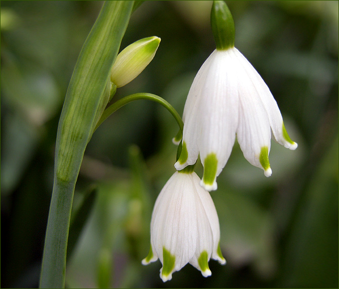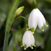 Sie sind wohl eine Schneeglöckchenart, blühen aber erst jetzt. Oder sind es frühe Maiglöckchen?