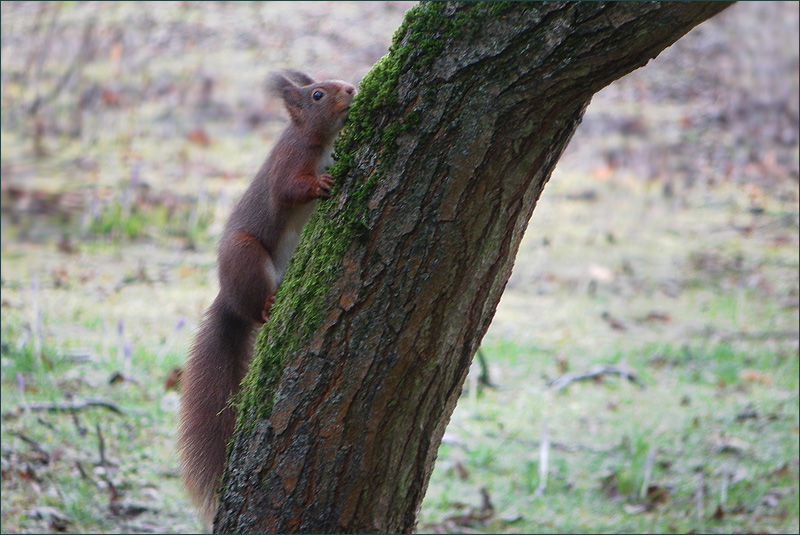 Am Baumstamm fühlte es sich wohler als auf dem gefrorenem Boden, jetzt sieht man sie wieder mehr unten