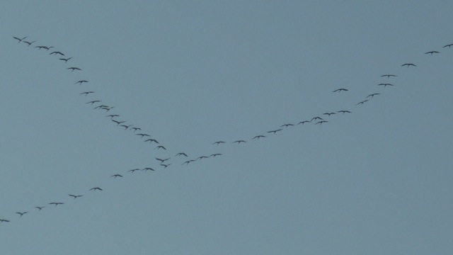Das Foto schickte mir mein Bruder aus dem Rheinland, am Samstag flog ein Schwarm zu meiner großen Freude laut trompetend über das Dorf hinweg, es war mir nicht möglich,ihn zu fotografieren.