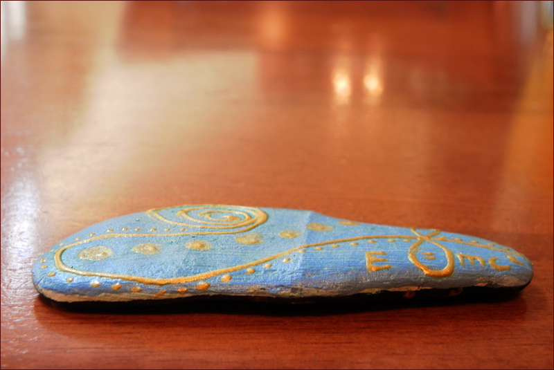Ich glaube, das ist die berühmte Formel für Einsteins Relativitätstheorie, was die Künstlerin damit sagen will, kann jeder für sich interpretieren. Ich finde die Steinchen einfach schön, ich finde die Idee ganz süß und mag Farbe und Bemalung, eine sehr originelle Idee. Liebe Grüße,