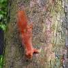 Man sieht wie es sich mit seinen Zehenkrallen an der Baumrinde festhalten kann.