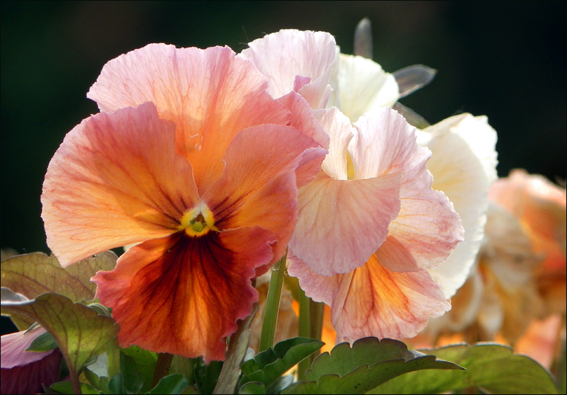 Es ist ( für mich) wirklich schwer, Stiefmütterchen in einem schönen Licht zu fotografieren...die Blätter haben eine besondere Textur, die nicht so durchscheinend ist, wie bei vielen anderen Blüten.