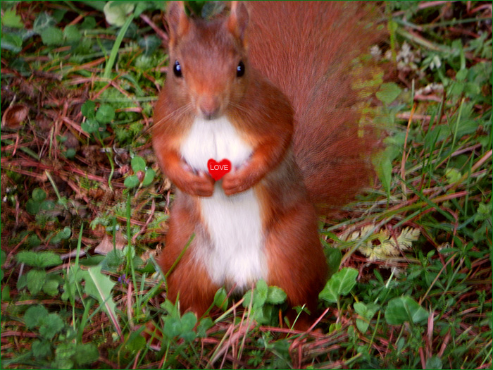 das Herz habe ich mit Adobe PS dem Eichhörnchen in die Pfötchen gelegt.