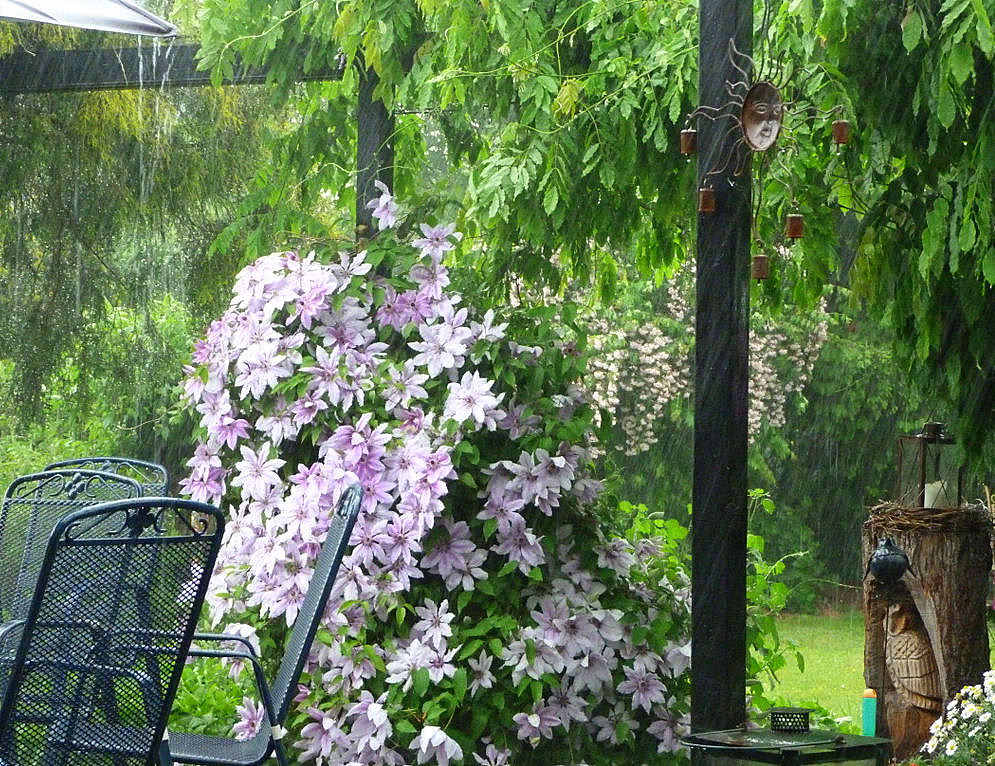 ... trotzdem schmeckte uns der Kaffee gut. Gewitter, Regen,Sturm, wir fanden es einfach schön. Ein Teil im Garten ist überdacht, da wurden wir nicht nass. Ein tolles Erlebnis