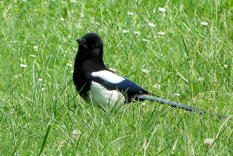 Ein Elsterjunges muss sich jetzt selbst ernähren, es rief noch nach der Mutter, aber sie kümmert sich nicht mehr darum. Äußerlich erkennt man bei Elstern gar nicht, ob es männliche oder weibliche sind