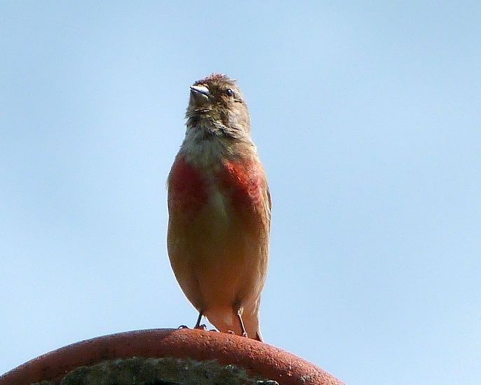 So einen habe ich noch nie gesehen. Erst dachte ich an ein Rothkehlchen, aber der Gesang war anders, aber wunderschön
