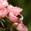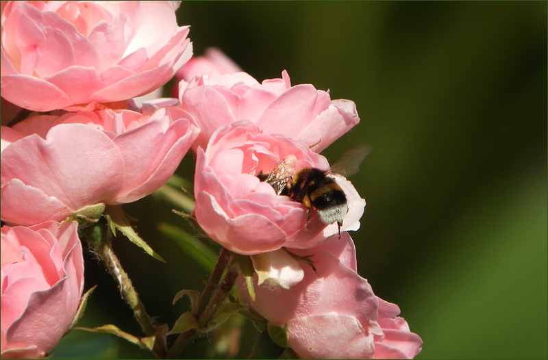 In der Blüte sieht man die Flügel einer zweiten Hummel