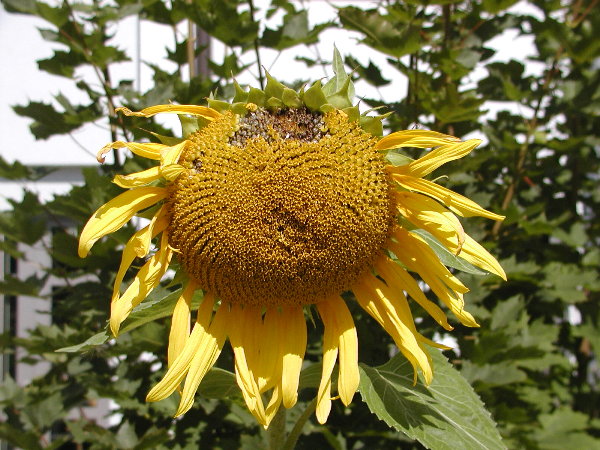 Lara kommt nach den Ferien in die erste Klasse, ihre Sonnenblume steht noch in der Kita.