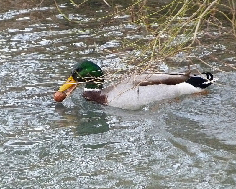 Die Ente tauchte unter und kam damit wieder in die Höhe. Ich weiß es nicht, was es ist, ich denke mal eine Kastanie