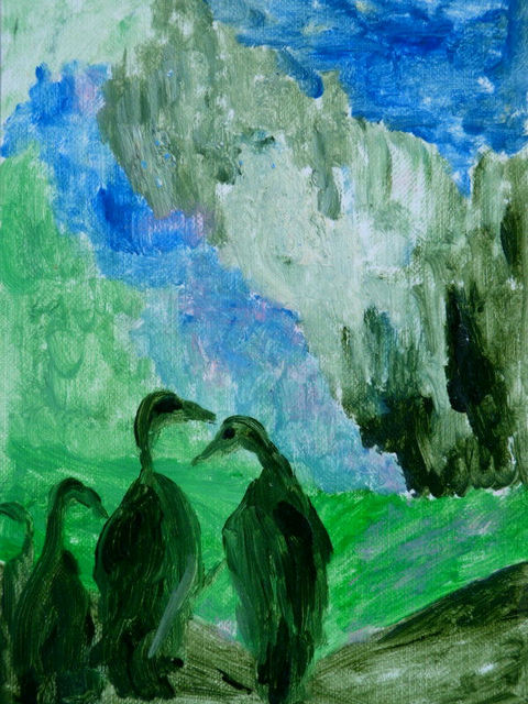 Ein kleines Ölbild auf Papier 17 x 12 cm von 1996. Zu der Zeit habe ich mehr aus dem Inneneren gemalt.Ich wusste vorher nicht, was es wird.