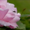 Heute morgen im Regenwetter auf Rosenblütenblättern gesehen.