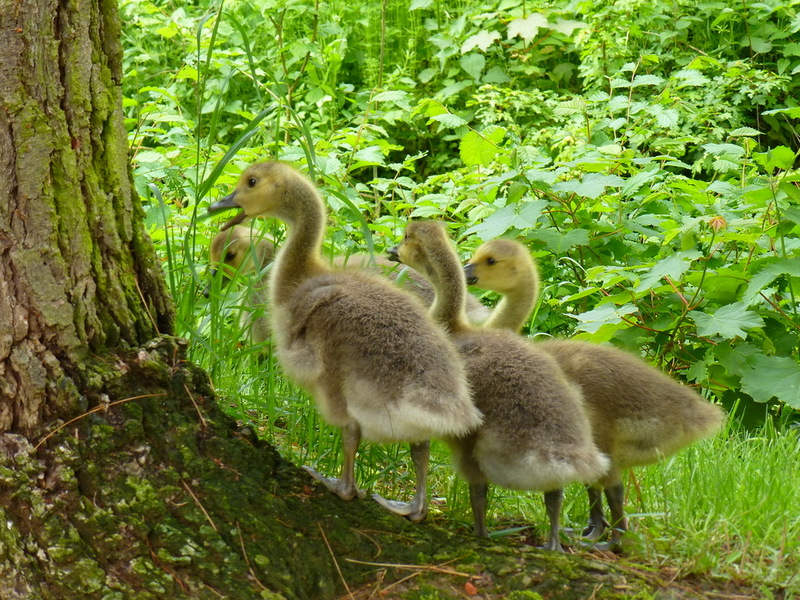 Es kam gerade eine Familie mit Kindern vorbei. Die Frau sagte zu mir, es sind sieben Küken hier und wollte vor meine Kamerea her laufen. Deshalb sagte ich, dass ich filme, musste dann abbrechen, weil die Gänslein davon liefen, da waren wohl doch zu viele Menschenkinder.