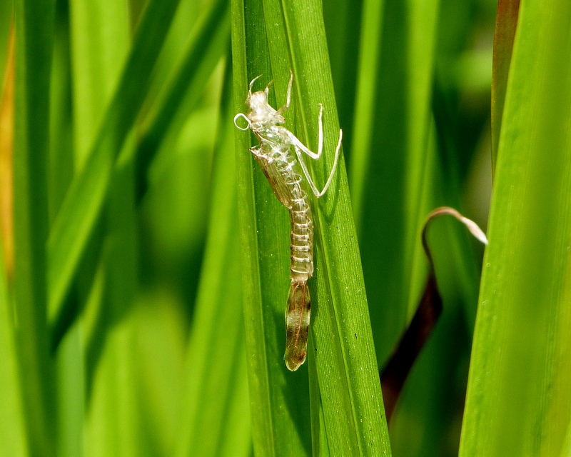 Die Hülle ist leer, die Libelle ist schon geschlüpft