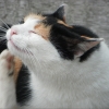 Es ist ein süßes Kätzchen....sehr hübsch, die Dreifarbigkeit. Sie erinnert mich immer an eine ziemlich wilde Katze, die uns mal zugelaufen war, in meiner Kindheit und bei uns in einem Schuppen Junge bekam. Sie blieb dann mehr oder minder bei uns und hatte nur die Angewohnheit, sich bei uns irgendwie zu bedanken, indem sie Mäuse tötete, leider auch mal einen Vogel und diese bei der Haustreppe ablegte, das war ganz merkwürdig. Ich hatte nie wieder eine Katze