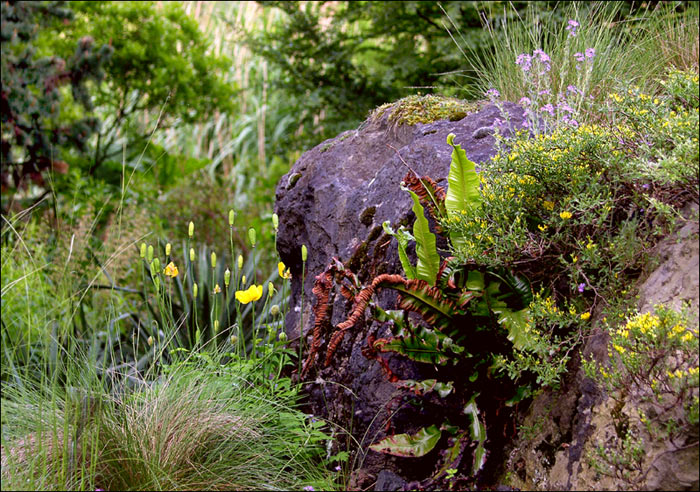 Viele Pflanzenarten siedeln an diesem Felsbrocken...