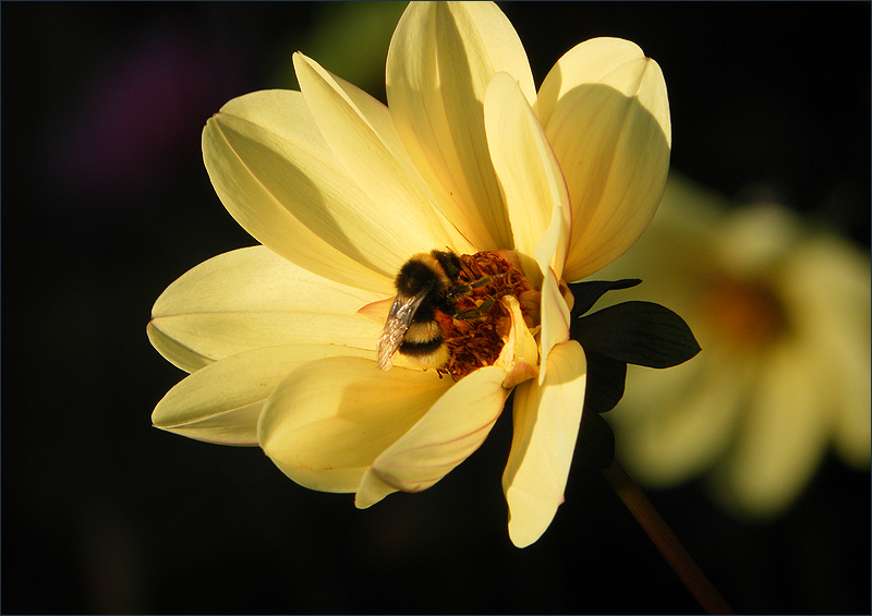 Wundervoll, auch mit der verschwommenen Blüte im Hintergrund.