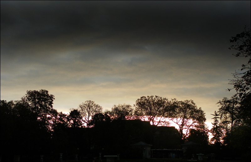 Wundervoll die zarten Farben am Himmel hinter den Bäumen