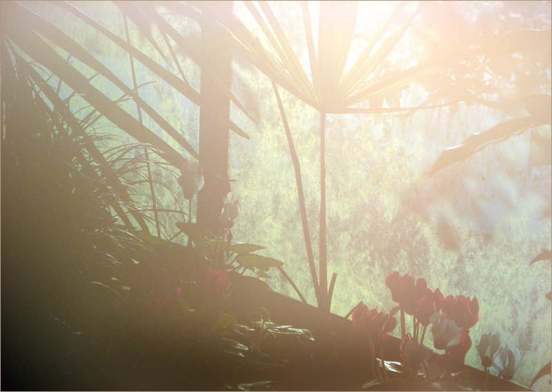 Das Bild ähnelt einem exotischen Garten, wunderschön mystisch