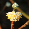 Herkunft: Japan China. Strauch von rundlichem Wuchs, mit zahlreichen aufrecht wachsenden und biegsamen Trieben. Sommergrün, 10-15 cm lange lanzettliche Blätter, Farbe dunkelgrün. Blüte: früher Austrieb, Februar – März. Die Knospen bilden sich bereits im Herbst und beim Aufbrechen zeigen sich dann kleine blassgelbe, trichterförmige Einzelblüten, die stark duften und in kugelförmigen Dolden vereint sind. Braucht gut durchlässige, nicht kalkhaltige Böden. Als Einzelbaum oder in Gruppen belebt er den Garten schon bei den allerersten warmen Frühlingslüften mit seinem Duft. Aus der Rinde wird in Japan Papier gewonnen.