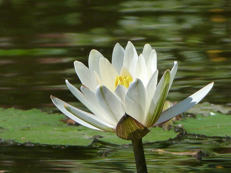 Eine unbestäubte Seerosenblüte, die geduldig auf ihr Käferlein wartet.