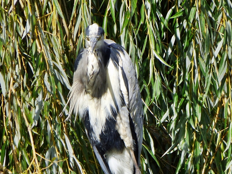 Er sitzt in der Trauerweide auf meinem Foto vorher