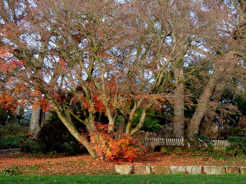 Was für ein Baum, mit derart vielen Stämmen. Dazu die letzten schönen Farben des Herbstes ... das Foto gefällt mir sehr gut.