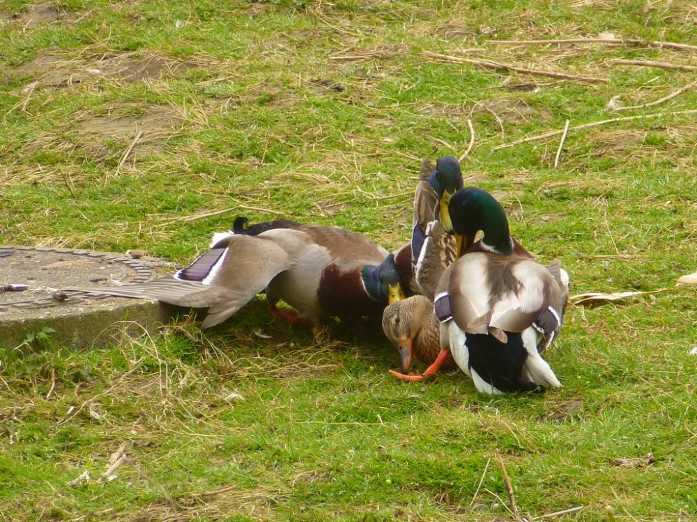 Aber dieses friedliche Paarungsritual unter Stockenten ist tatsächlich nur die halbe Geschichte. Denn im Frühjahr kommt es bei den Vögeln zu einer weiteren Form von Balz, bei der es alles andere als gesittet abläuft. Stürzen sich mehrere Erpel erbarmungslos auf eine einzige Ente, bleibt manch ein Parkbesucher, so wie unsere Leserin, von der Brutalität schockiert zurück.