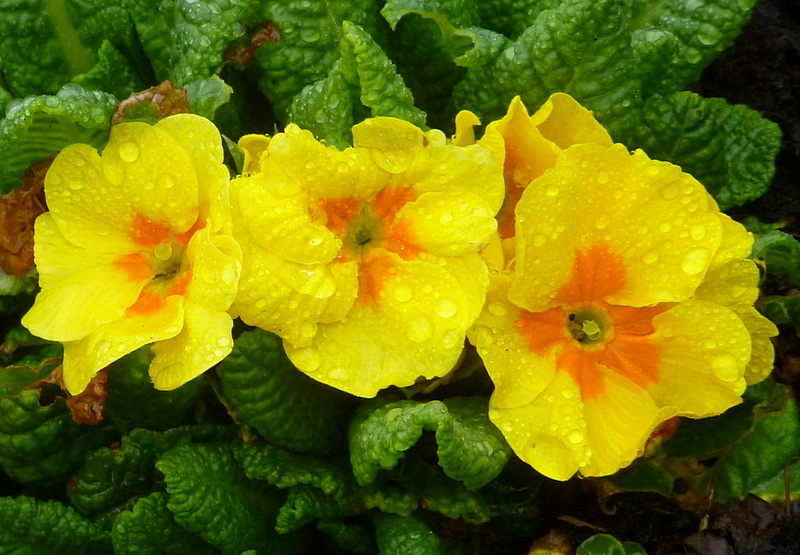Primeln im Regen