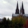 Heute morgen um 8 Uhr am Kölner Dom. Links befindet sich das Kunstmuseum Ludwig. Die rosa Statue ist eine Popart-Version von Michelangelos *David*