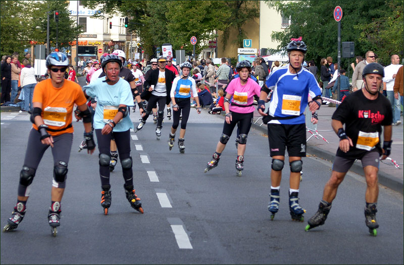 Heute war in Köln ein Volksmarathonlauf durch alle Stadtteile und die City. Zuerst kamen die Rollerskater, danach die Marathonläufer...