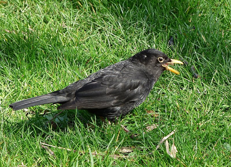 Verspeist gerade einen dicken Regenwurm