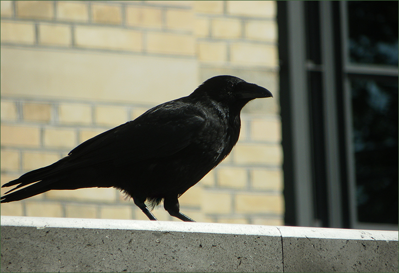 Er erinnert mich an meinen Raben-Freund, dem ich hier immer wieder begegne. Ich sehe ihn immer allein. Wenn es kalt war oder gar Schnee lag, hat er manchmal eine Erdnuss von mir bekommen, ich habe das Gefühl, er hat das nicht vergessen. Ein kleiner - na ja für einen Vogel ein ziemlich großer - gefiederter Freund.