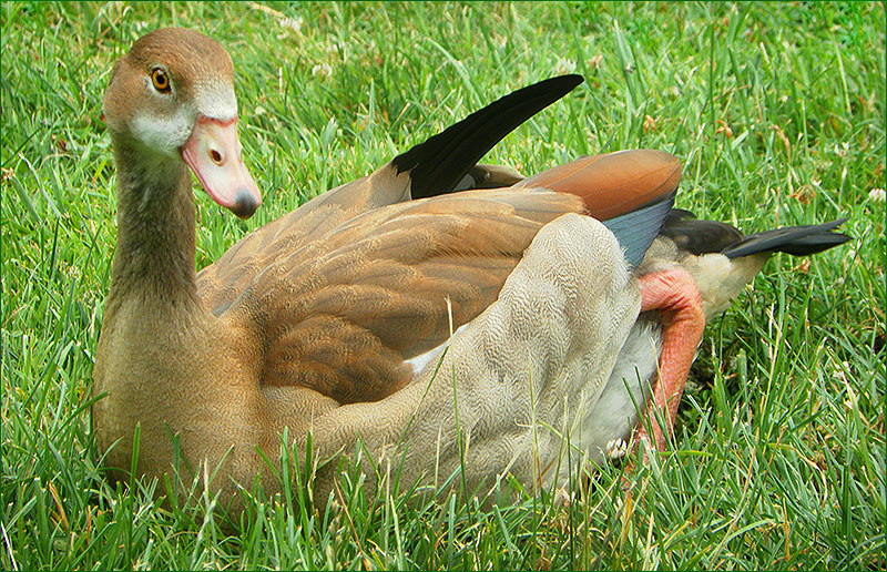 Sie ist so schön mit ihrem bunten Gefieder. Kanadagänse sind im Gegensatz zu Nilgänsen sehr laut und beschmutzen die Wege stark. Ich mag Nilgänse sehr gern