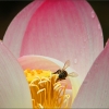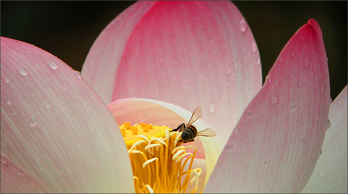 Das ist ein herrliches Foto. Ganz abgesehen von all den Details der wunderschönen Blüte, beeindrucken mich hier auch die zarten filigranen Bienenflügelchen.
