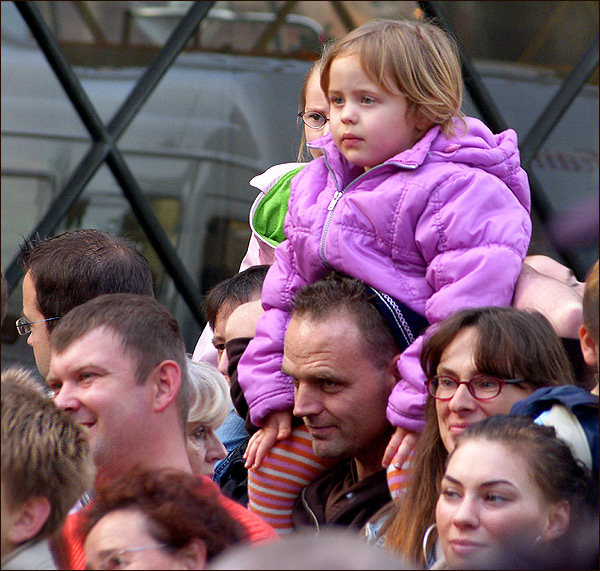 Kinder haben es oft gut, auf den Schultern des Vaters haben sie den Überblick...