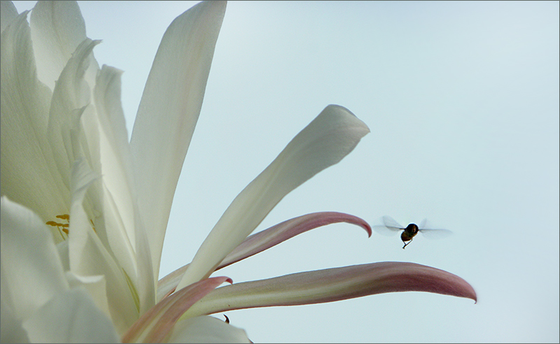 Das ist was. Vor ein paar Tagen habe ich auch eine Schwebfliege auf meinem Balkon fliegend fotografiert