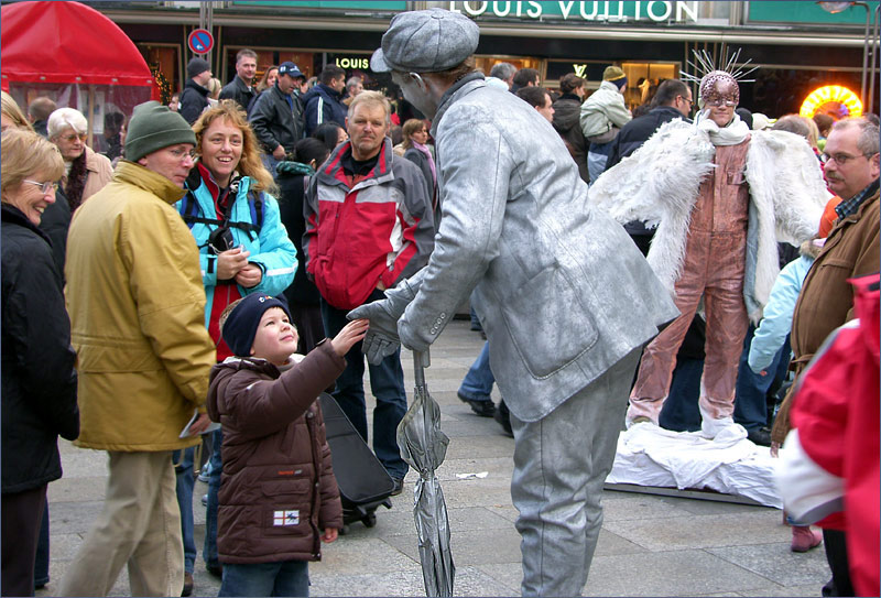 Es ist schön zu beobachten wie beeindruckt Kinder sind. Im Hintergrund steht ein Vogelmensch