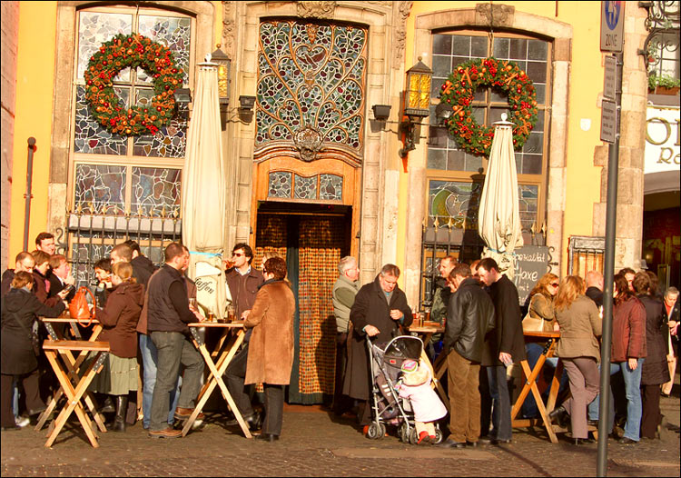 Bei den milden Dezembertemperaturen sind die Stehtische im Freien beliebt...