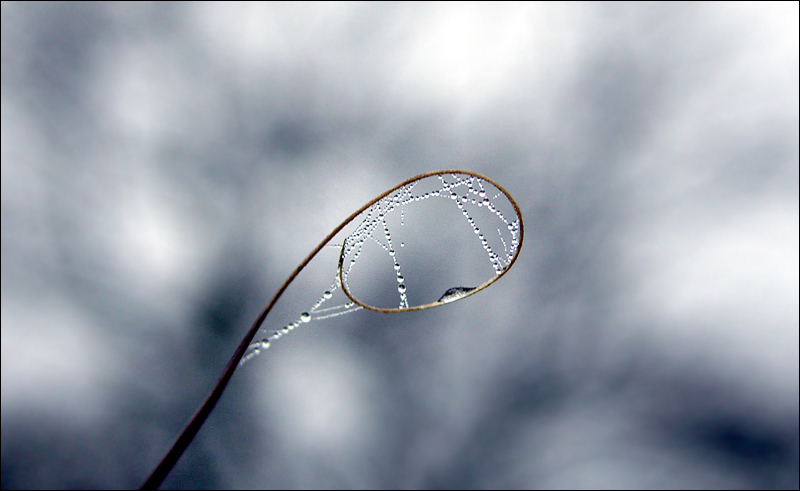Gras mit Spinnenfäden und Morgentau