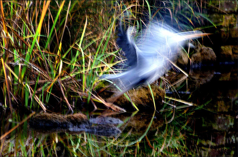 Dass er abgehoben hat ist deutlich zu erkennen.... auch die Flügelspanweite ist ahnbar