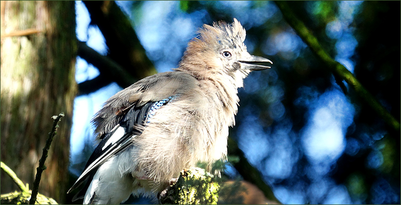 So ähnlich sahen die Eichelhähere aus, die wir in meiner Jugendzeit zu Hause aufzogen, wenn sie unsere Worte nachsprachen, sie machten dabei ziemliche Verrenkungen.