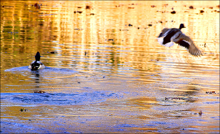 Es ist faszinierend zu beobachten wie Enten aus dem Wasser heraus losfliegen können...