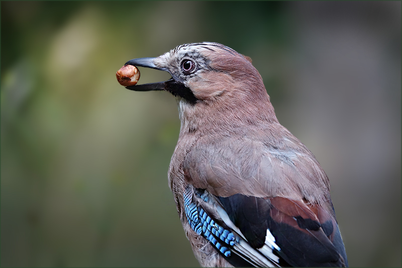 Ein prächtiges Federkleid, mit wunderschönem Blaugrauton auf dem ganzen Bild und voller Harmonie. Es kommt mir vor, als würde er sagen: "Die Nuss ist geknackt, das Rätsel gelöst". Oder aber: "Wenn ihr zum Kern gelangen wollt, müsst ihr vorher die Schale aufbrechen". Das erinnert mich auch daran, dass ich mir selbst immer ein Rätsel war und einerseits glaube dass es gelöst ist, und dass ich mir andererseits selbst immer ein Rätsel sein werde, so paradox es auch klingen möge.