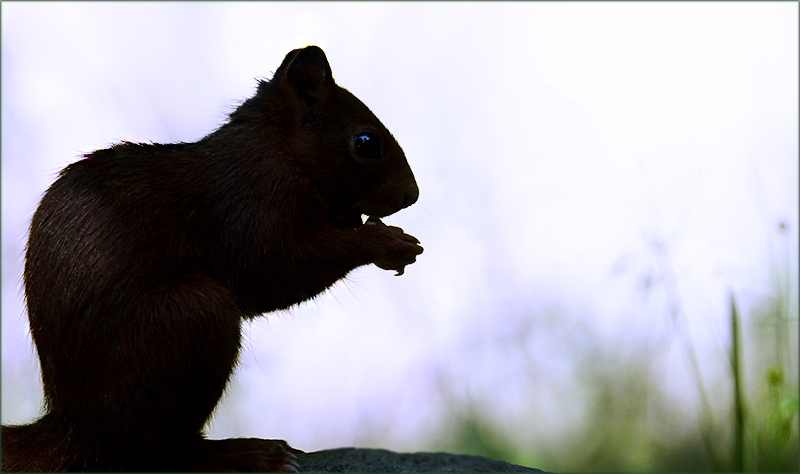 Ich mag die aquarellischen Verläufe von dem Hintergrund. Das Eichörnchen kommt sehr gut zur Geltung