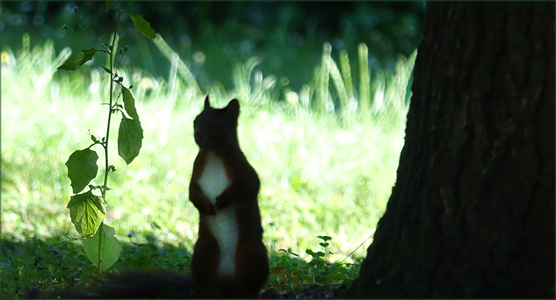 Ein sehr schönes Helldunkelmotiv, mit schöner Aufteilung. Das Eichhörnchen schaut voll Vertrauen in die Kamera.