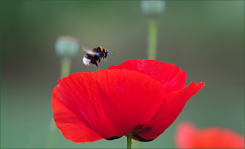 Ja liebe Bussi, es ist ein trauriges Kapitel, dass der Natur so wenig positive Zuwendung geschenkt wird. Stattdessen wird die Technik bis zum Exzess vorangetrieben. Wir haben schon die 4. Generation an Funkverkehr, die wegen ihrer Funkwellen-intensität für Mensch und Natur bereits schädlich ist. Jetzt arbeitet man daran die 5. Generation an Funkverkehr aufzubauen, die alles bisher dagewesene in den Schatten stellt, das geht bis in den Bereich der Millimeterwellen (also der Microwellen), mit Strahlern, die alle hundert Meter errichtet werden und eine sehr hohe Funkwellen-intensität besitzen. Es wird angestrebt, alle Gegenstände, von der Waschmaschine über den Kühlschrank bis hin zum Toaster und Rasierapparat usw. mit Chips zu versehen und selbst die Autos fernzusteuern. Wie kann das alles wichtiger sein als die Mohnblüte hier auf dem Bild mit der einfliegenden Hummel? Wie kann Totes wichtiger sein als das Lebendge? Dieses wunderschöne Bild, ist mir lieber als all die teleskopischen Aufnahmen von den fernen Galaxien.