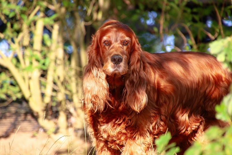Er ist wunderschön. Das ist ein Irish Setter. Mein Stiefvater in jungen Jahren hatte mal einen