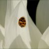 Ich glaube, es handelt sich um einen aus China eingeführten Marienkäfer. Es war zwischen den Jahren 2005 und 2007, ich lebte damals in einer Appartmentwohnung in der dritten Etage, als im Sommer eine Invasion von Marienkäfern meinen Balkon heimsuchte, aber auch anderen Orts gab es diese Flut von "ja" nützlichen Tierchen, die sich zum Teil bis in die Wohnung verirrten. Ein Bekannter erzählte mir, dass er diese Plage (so seine Auffassung) mit Gift vernichtete. Später erfuhr ich, dass diese Marienkäfer aus Frankreich eingewandert waren. Frankreich hatte diese Tierchen aus China bezogen, als natürliche Bekämpfung von Blattläusen. Diese Marienkäfer hatten sich sehr schnell ausgebreitet und auch den Weg zu uns gefunden, sich hier ebenfalls schnell vermehrt und die einheimischen Marienkäfer verdrängt, denn sie können sich besser anpassen und durchsetzen als die einheimischen. Mir ist aufgefallen, dass es heute nur noch wenige von ihnen gibt. Die weißen Blütenblätter hier auf dem Bild, bringen den kleinen Käfer schön zur Geltung.