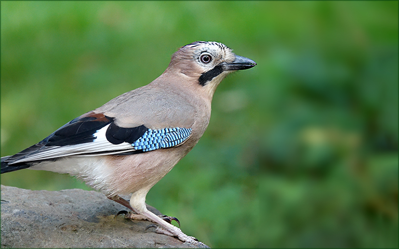 Ich glaube, hinter seinem Blick verbirgt sich ein großes Geheimnis, ein Wissen, nicht im Sinne der Intelligenz wie wir sie verstehen, sondern auf rein seelischer Ebene. Er bildet mit dem Stein auf dem er steht eine farbliche Einheit und einen schönen Kontrast zum grünen Hintergrund. Ein sehr schönes Gefieder. Gut getroffen.